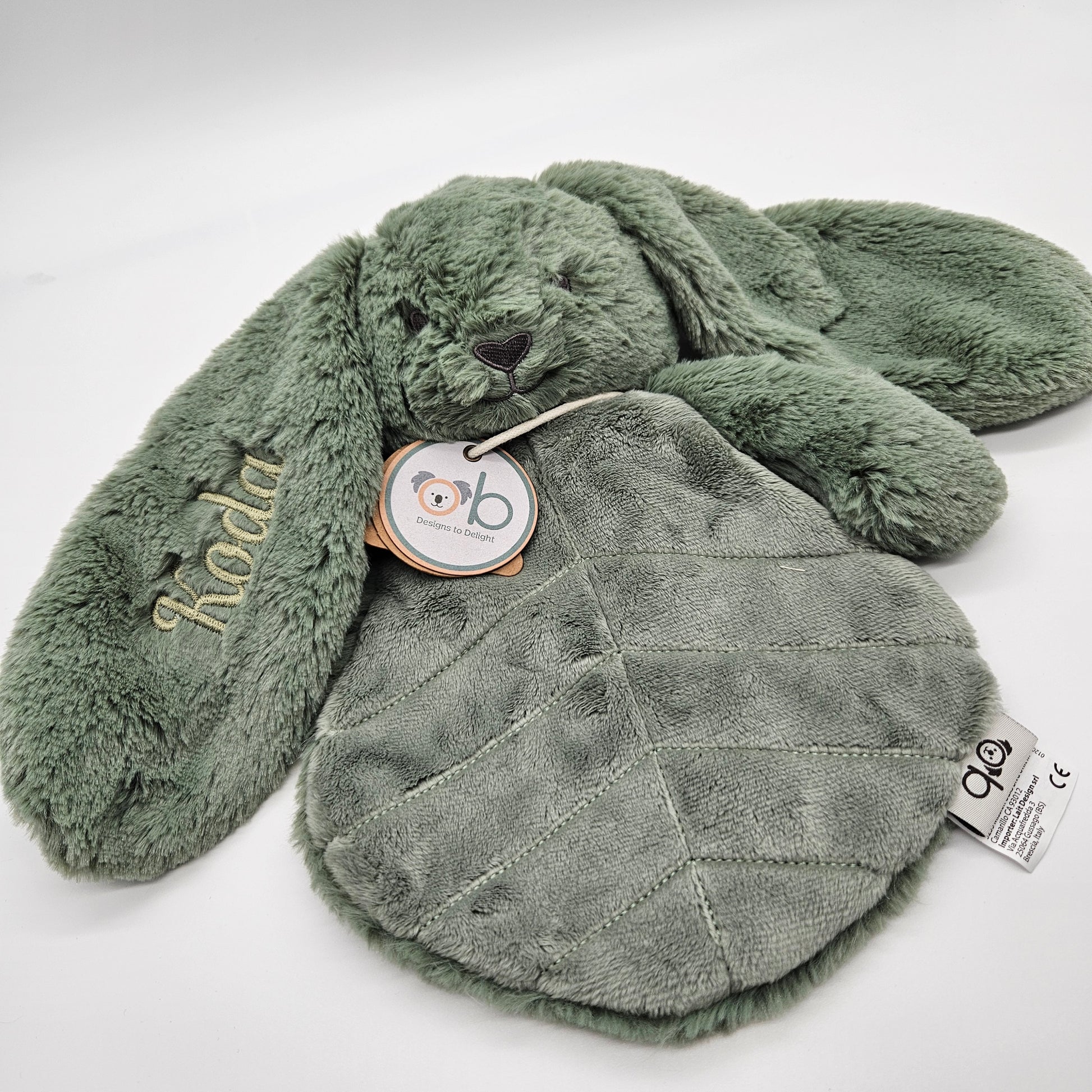 Personalised Baby Bunny Comforter Toy in Sage | OB Designs